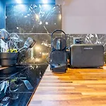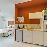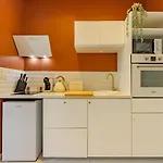 Værelserne har en spiseplads, et skrivebord og tv, mens et køkken er udstyret med en mikrobølgeovn, en elkedel og et køleskab.